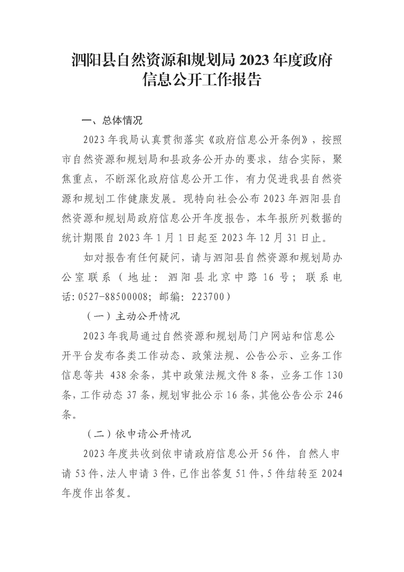 泗陽(yáng)縣自然資源和規(guī)劃局2023年度政府信息公開工作報(bào)告