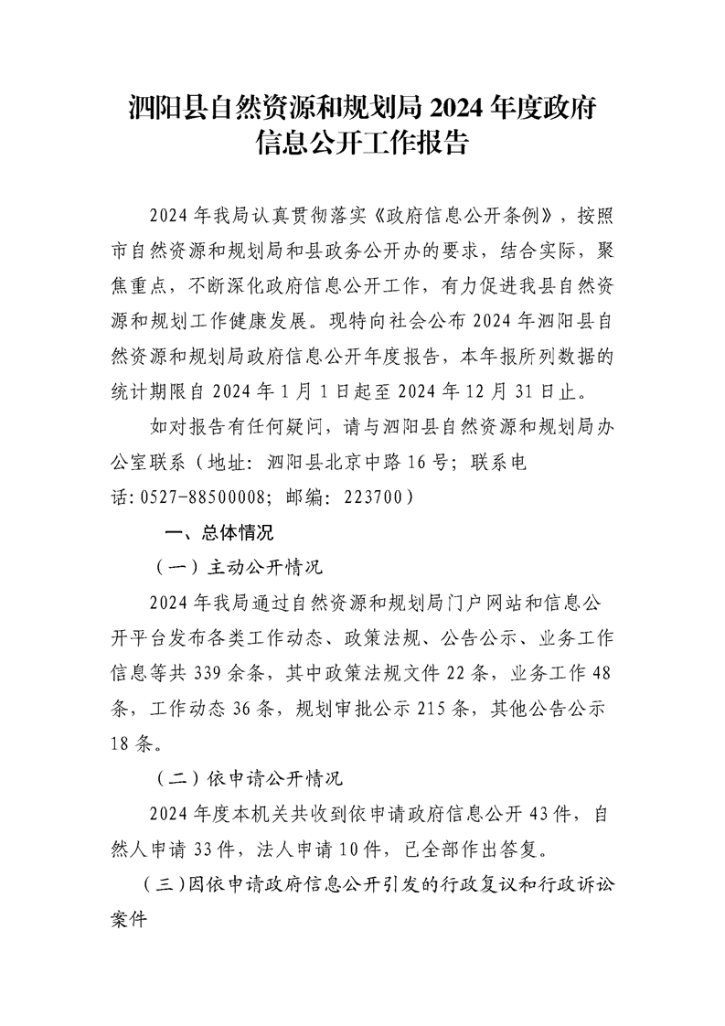 泗陽縣自然資源和規劃局2024年度政府信息公開工作報告