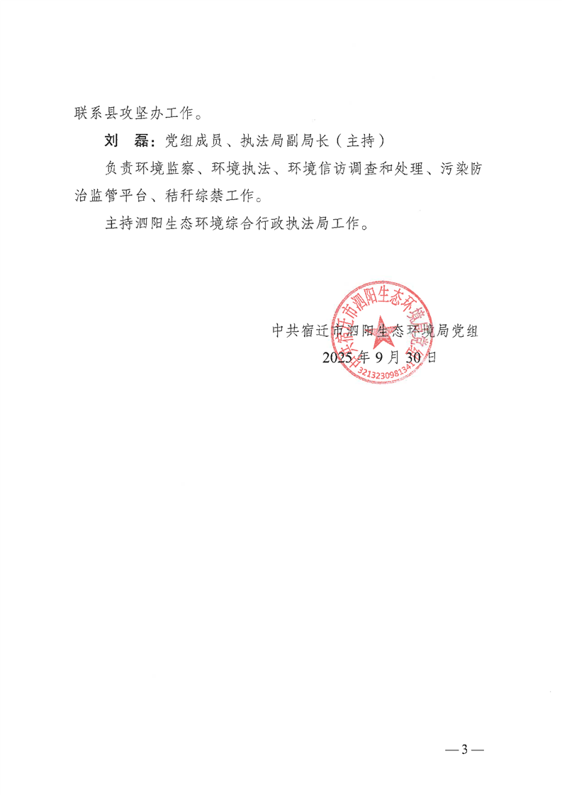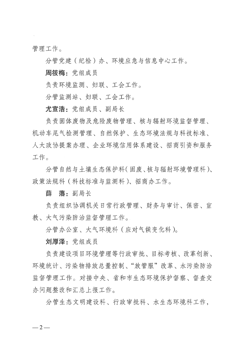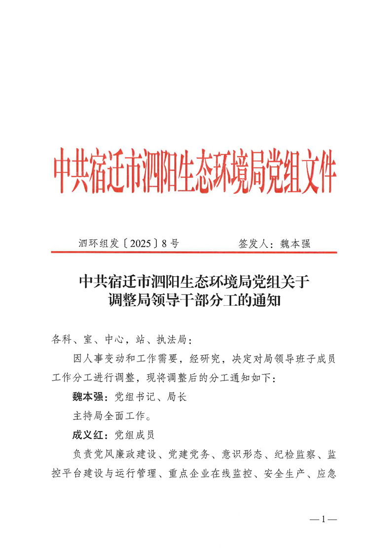 泗陽生態環境局關于調整局領導班子成員分工的通知