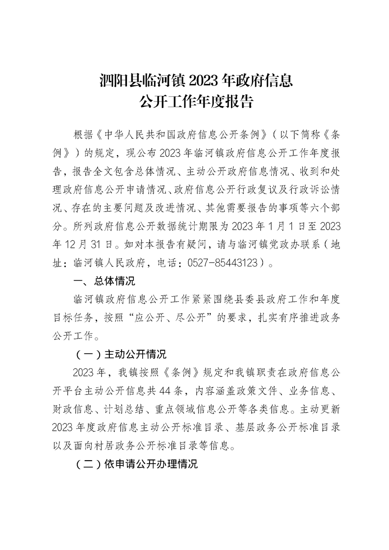 泗陽縣臨河鎮2023年政府信息公開工作年度報告
