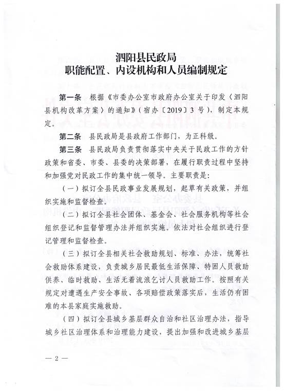泗陽縣民政局職能配置、內設機構和人員編制規定,