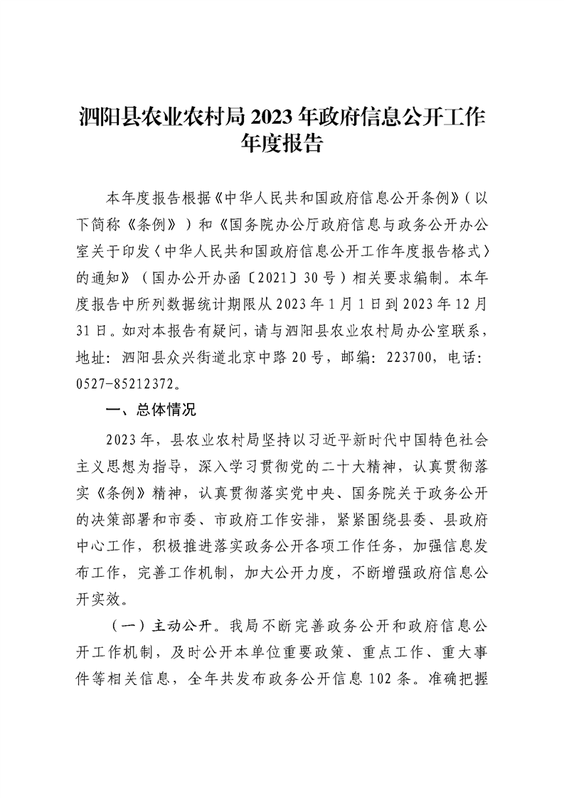 泗陽縣農業農村局2023年政府信息公開工作年度報告