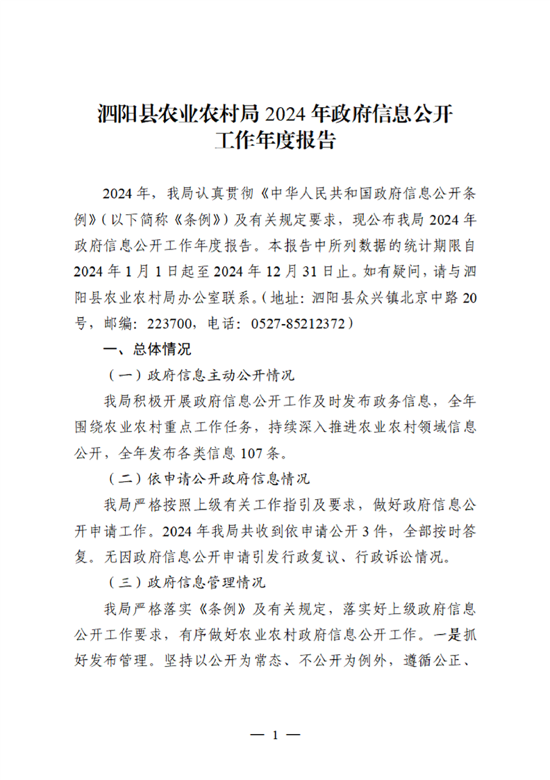 泗陽(yáng)縣農(nóng)業(yè)農(nóng)村局2024年政府信息公開工作年度報(bào)告