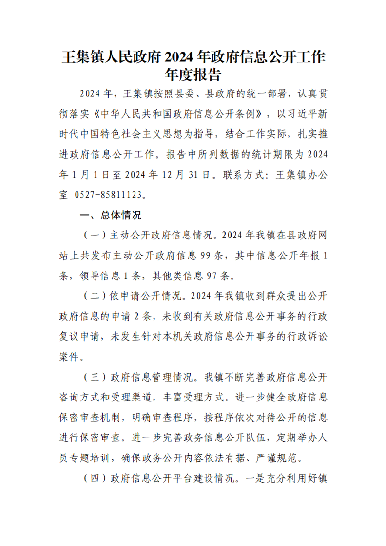 王集鎮人民政府2024年政府信息公開工作年度報告
