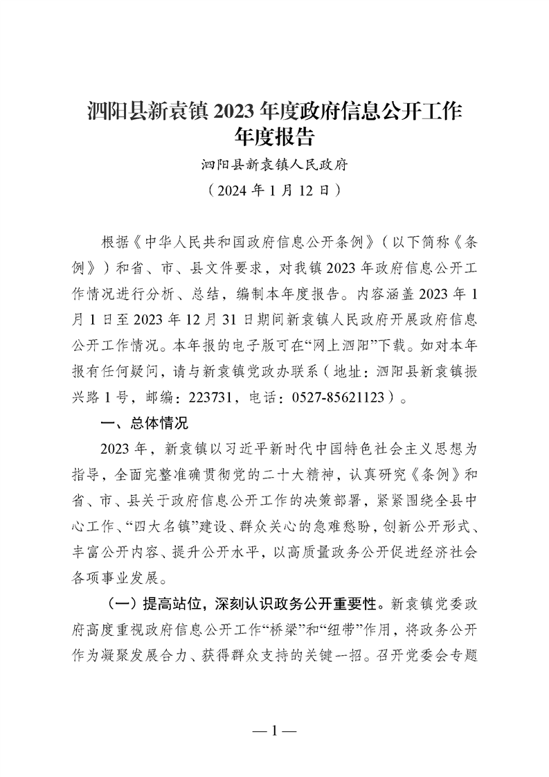 泗陽(yáng)縣新袁鎮(zhèn)人民政府2023年度政府信息公開(kāi)工作年度報(bào)告