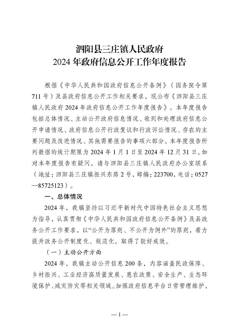三莊鎮人民政府2024年信息公開工作年度報告