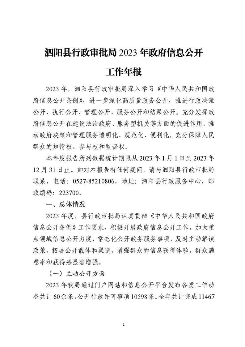 泗陽縣行政審批局2023年政府信息公開工作年報